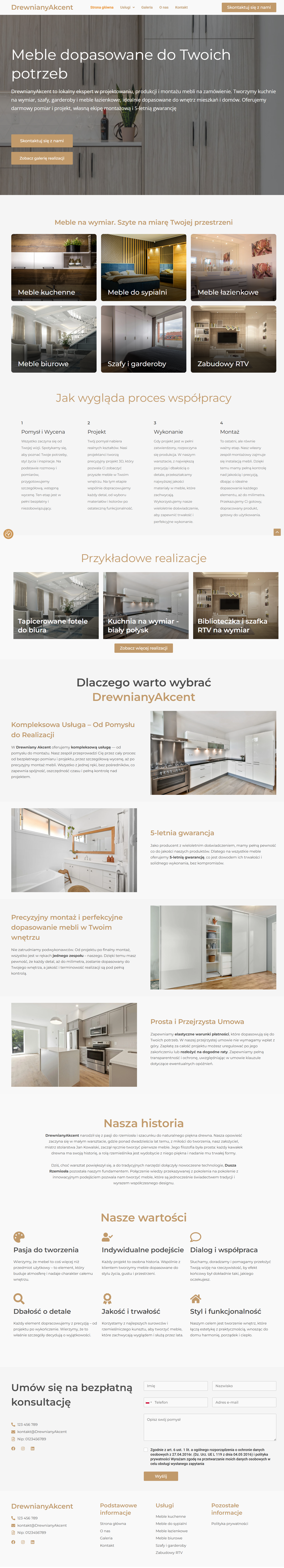 Strona dla Producenta mebli z galerią realizacji, formularzem kontaktowym, prostym i estetycznym opisem usług.